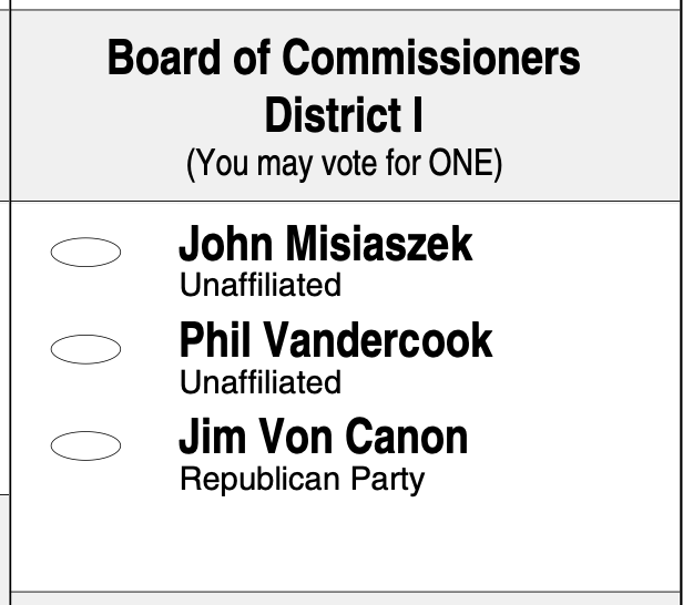Misiaszek stands a chance if the slugfest between Von Canon and Vandercook divides the conservative vote significantly. The Democrat vote — Misiaszek’s pals — in the county is typically at about 36 percent.