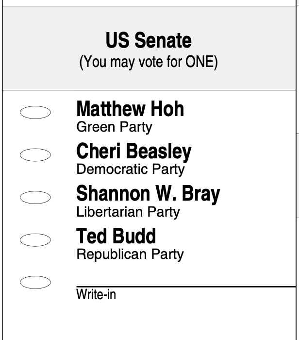 The Green Party should strip some votes from Democrat Cheri Beasley. One would think the Libertarian would hurt Republican Ted Budd. But modern Libertarians have moved so far left that they are not too different from the Greens. So, their candidate could also hurt Beasley some.